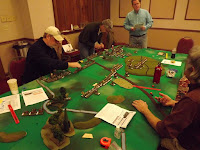 After the initial map moves, the games could begin. Each would be considered a sizable game, but as a whole, an epic offering with over 500 28mm figures involved over 36 feet of tables, and over 20 players.